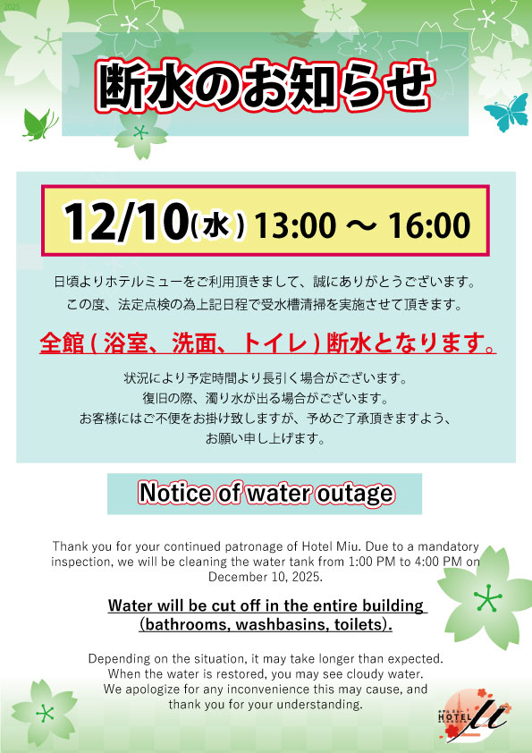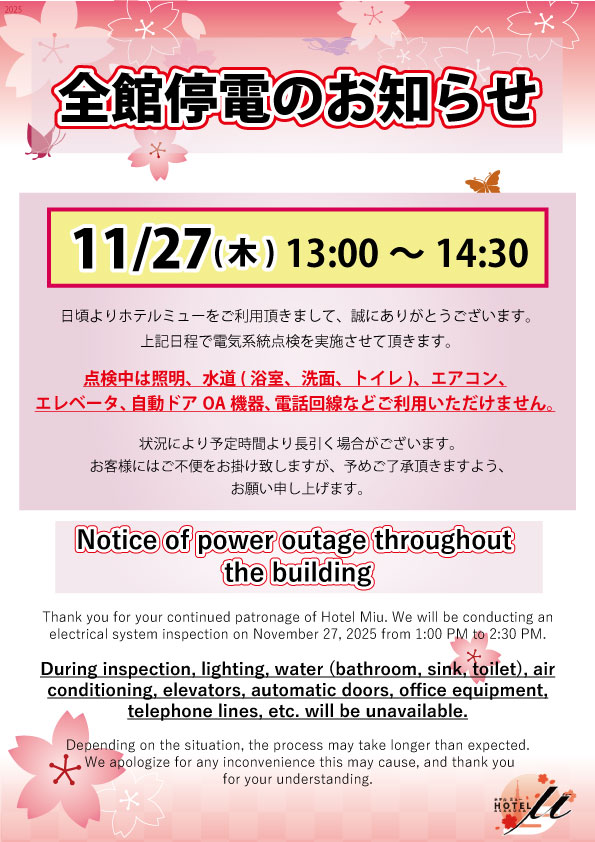 当ホテルは、法令等の改正や社会情勢の変化に応じ適宜見直しを行い、改善を図ってまいります。